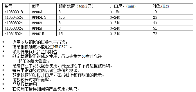WPDK型層疊鋼板起重鉗